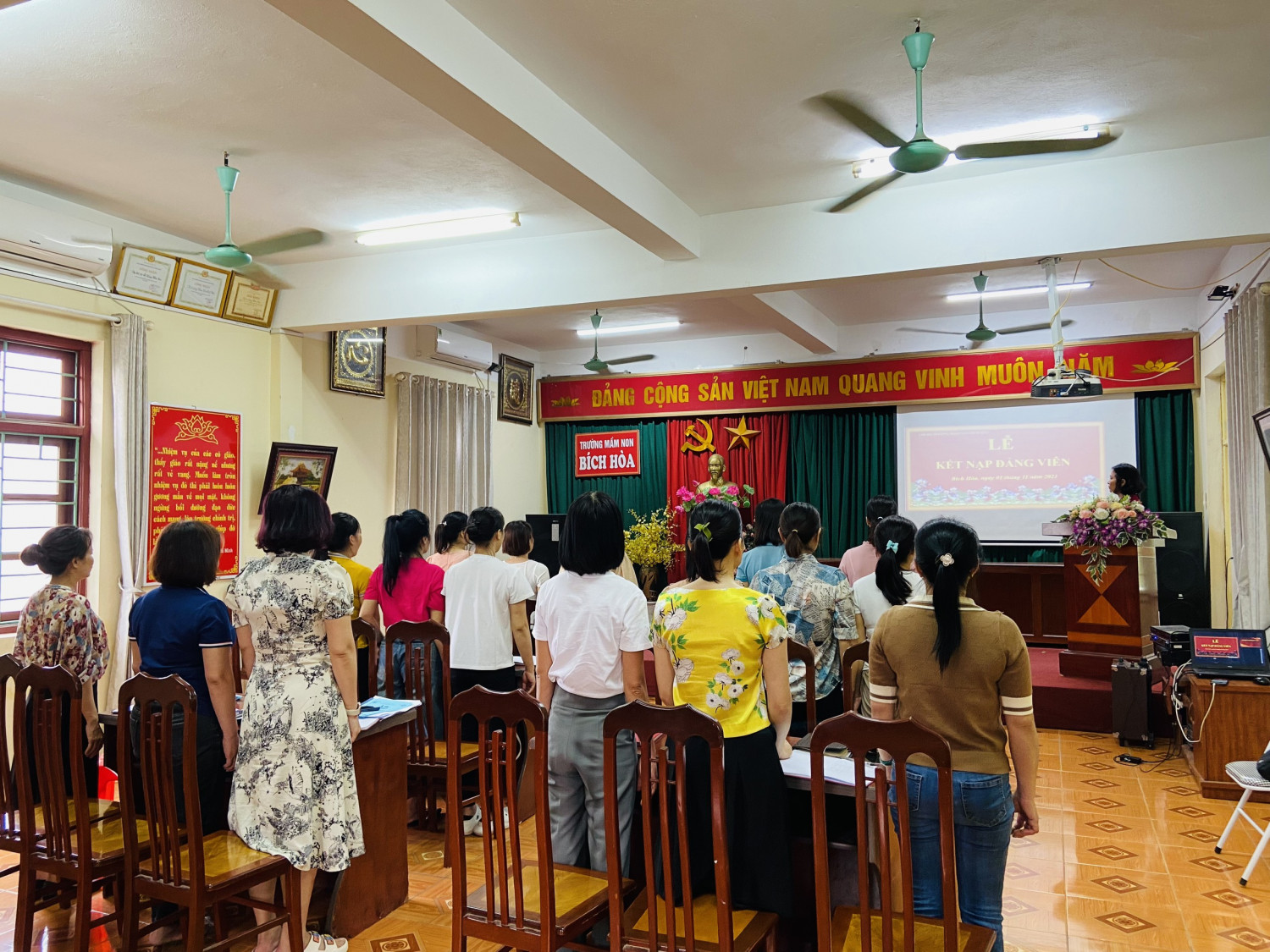 Trường Mầm Non Bích Hòa rộn ràng chuẩn bị cho ngày Tết Độc lập ngày 2-9.